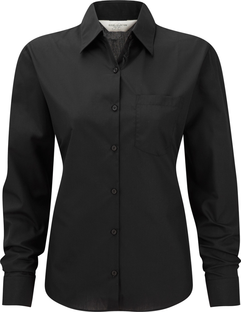 Langarm Popeline Bluse Black Zum Besticken Und Bedrucken Russell Hemden Und Blusen Stickx Textilveredelung